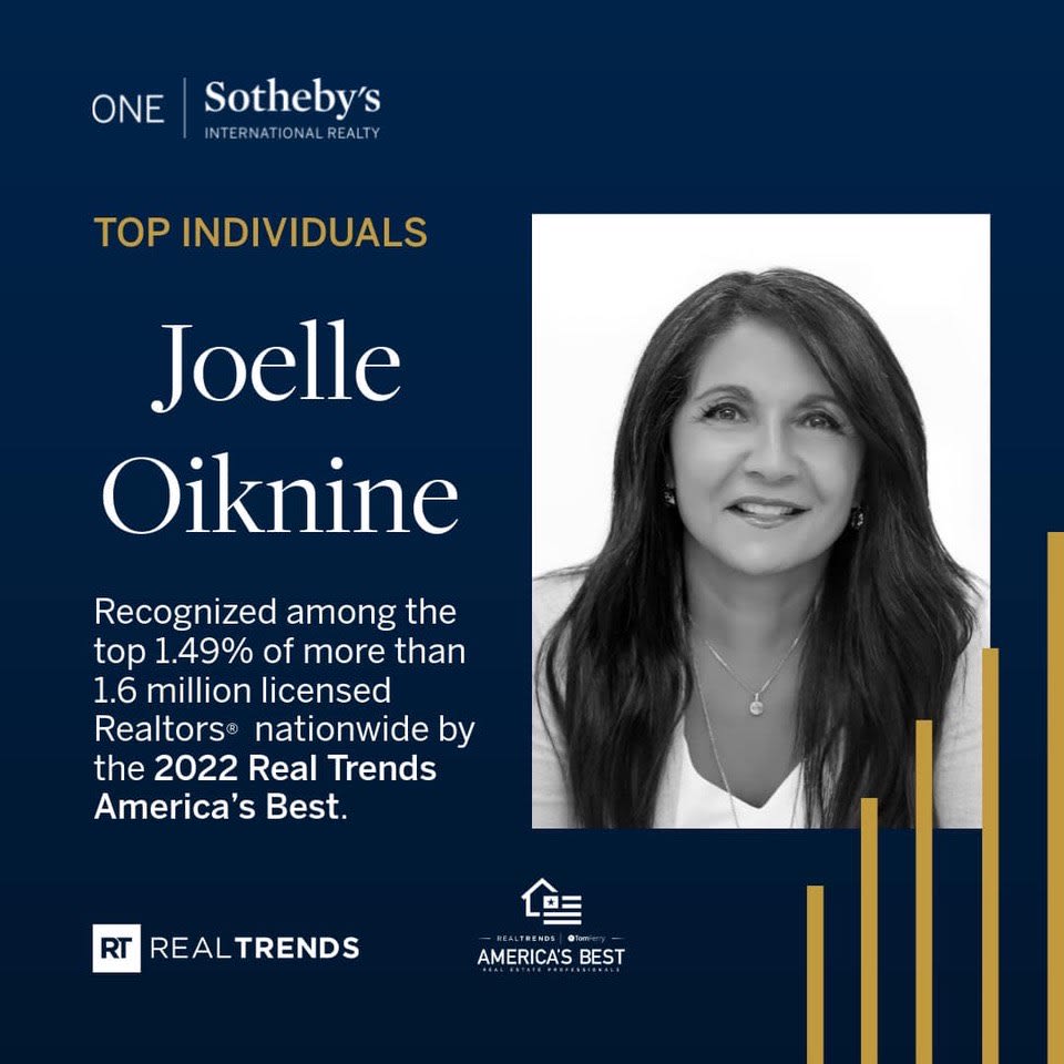 Joelle Oiknine has been recognized as one of the Top Ten producing agents at ONE Sotheby’s International Realty as well as being named to the Real Trends WSJ Top 100 agents in Miami on multiple occasions.