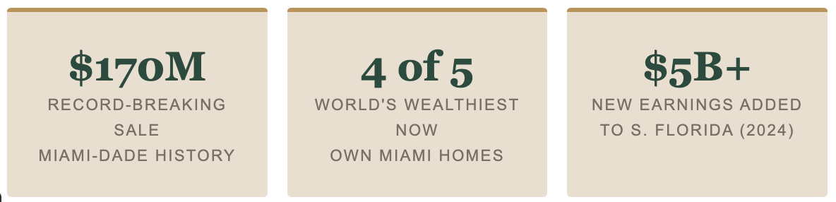 The wealth migration to South Florida is not limited to nine-figure purchases. The Miami Association of Realtors reported that over 55,000 workers from out of state relocated to South Florida in 2024 alone — primarily from California, New York, and Texas — with median incomes significantly above those of in-state movers. That influx added more than $5 billion in earnings to the region in a single year.